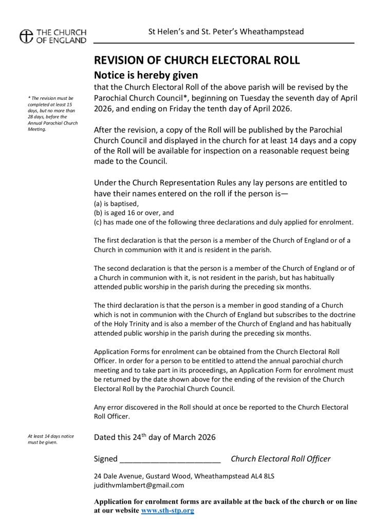 Please complete the form and submit it electronically by clicking here or you can download and print a form (paper copies are also available in church). Please return paper forms to the church office, or by scanning them and email to office@sth-stp.org.